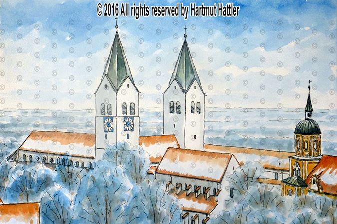 Sämtliche hier gezeigten Motive können Sie sowohl als Aquarell-Bilder, handgemalte Originale, gerahmt (ca. 510x410mm) oder ungerahmt (ca. 390x290mm) oder/und als Postkarten und Grußkarten erwerben. Sie können zu den Post- und Grußkarten auch eigene Texte angeben, welche dann auf den Motiven zu sehen sind. Auch die Text-Positionen sind frei wählbar. Auf Wunsch können auch entsprechende Orts- und Objektangaben passend zu den Motiven angegeben werden. Alles in wählbaren Schriftarten wie Druck- oder Schmuckschriften. Dazu kontaktieren Sie mich bitte!